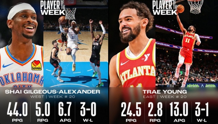 2025-03-11 11:16:28周最佳:亞歷山大場均44分5板6.7助 特雷-楊場均24.5分2.8板13助