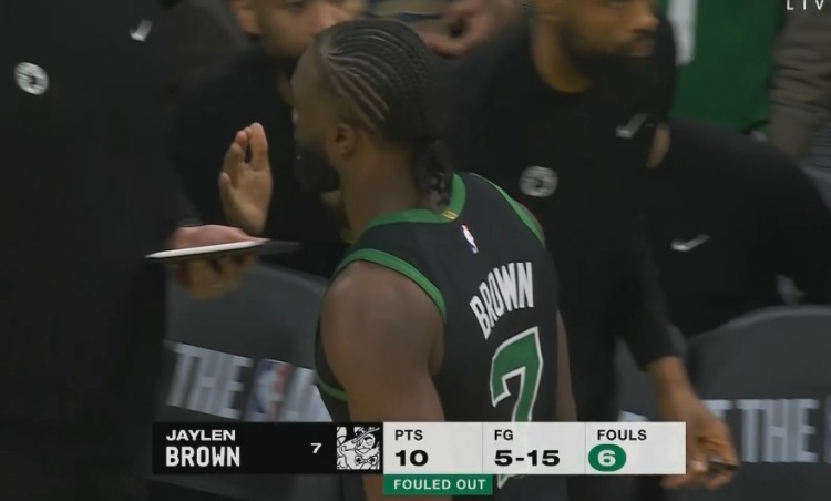 2025-03-13 17:17:55今天拉了!杰倫-布朗外線狂打鐵 全場15中5得10分且6犯離場!