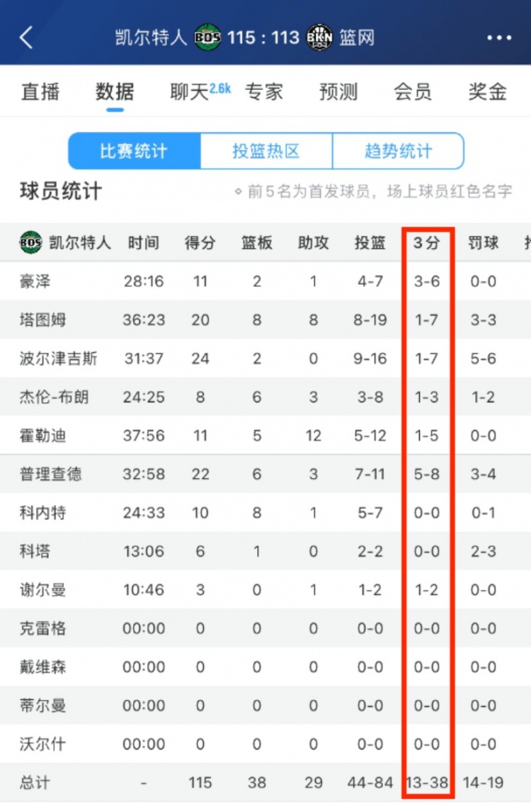 2025-03-16 10:32:49除普理查德&豪澤外線都失準(zhǔn)!綠軍全隊(duì)三分38中13 命中率僅34.2%