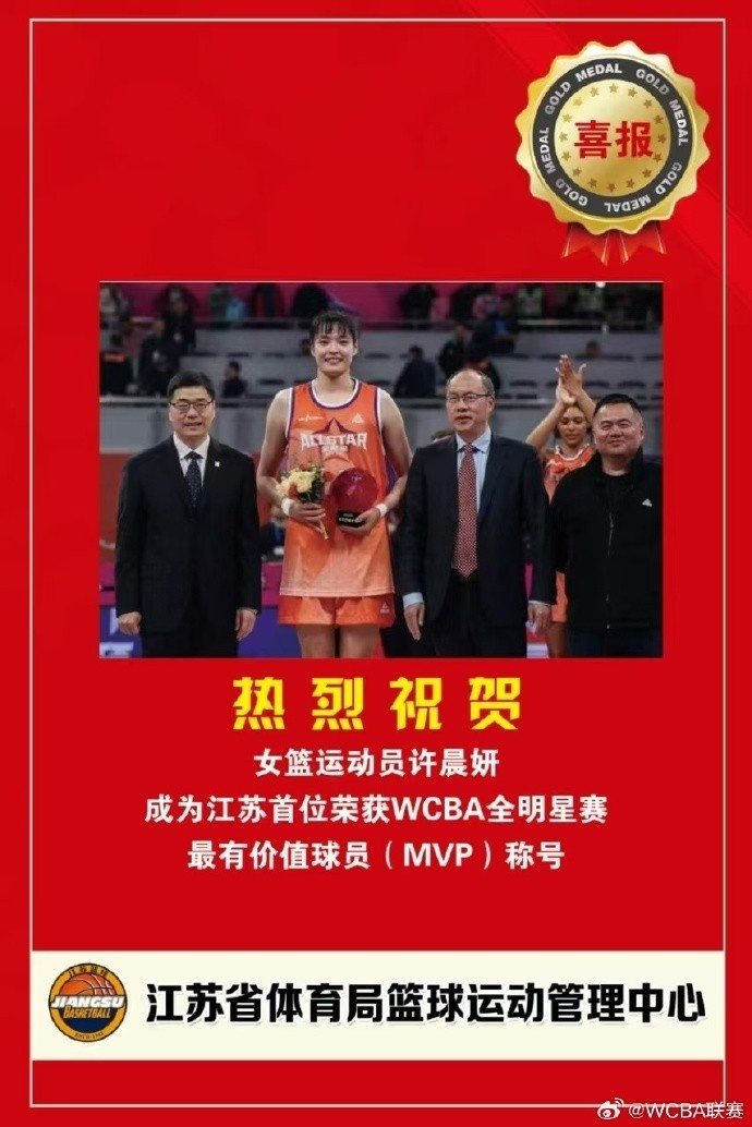 2025-02-25 00:28:01江蘇省體育局籃球中心發(fā)來賀電 祝許晨妍成江蘇首位女籃全明星MVP