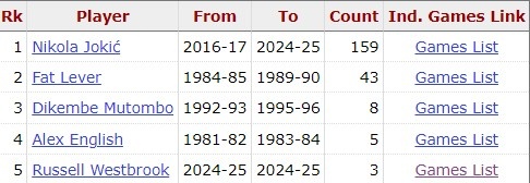 本場是威少加盟掘金以來第4場三雙,這已經(jīng)能排到掘金隊(duì)史三雙榜前5。