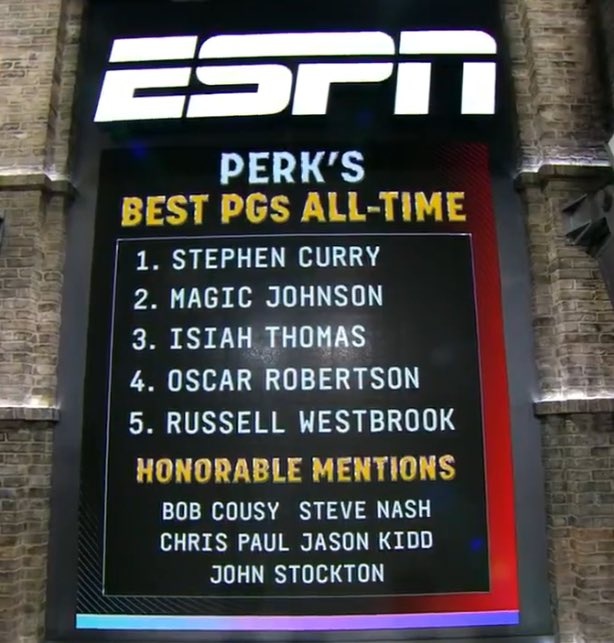 2025-03-20 21:58:36帕金斯評歷史前5控衛(wèi):庫里&魔術(shù)師&托馬斯&大O&威少