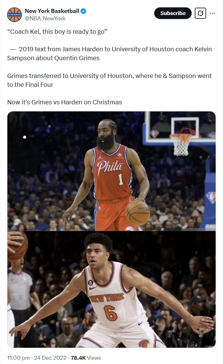 在休斯敦期間,格萊姆斯的擋拆防守和后場籃板能力大大提高了,這兩項后來成為了他在NBA的立足之本。2021年選秀大會,他在首輪第25順位被尼克斯摘走——對于曾經(jīng)被看好拿下前五順位的天才來說,這個結(jié)果多少有些讓人失望,但格萊姆斯心態(tài)很好,這得益于他在學生時代一直養(yǎng)成的性格,格萊姆斯堅信,就算兩年前他以高順位進入NBA,該學的東西還是要從頭學起,從一個較低的起點出發(fā)不一定是壞事。