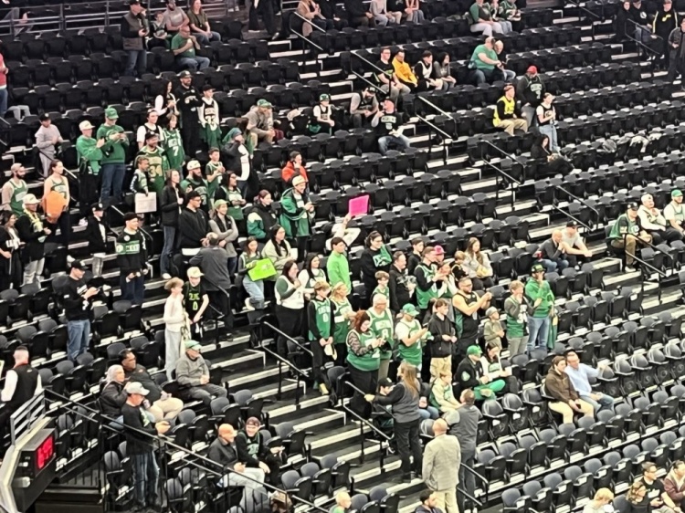 綠軍記者Sean Grande曬出一張球隊遠征軍球迷早早到場的照片,并寫道:“每次客場都會出現(xiàn)的場景。在鹽湖城,綠軍球迷在開賽前1小時就坐在位置上了,他們?yōu)橥痘@熱身的每一個綠軍球員歡呼。”