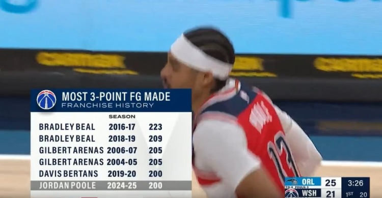2025-03-22 14:01:59祖上不富裕!普爾本賽季已命中200記三分 距隊(duì)史最高紀(jì)錄還差23記