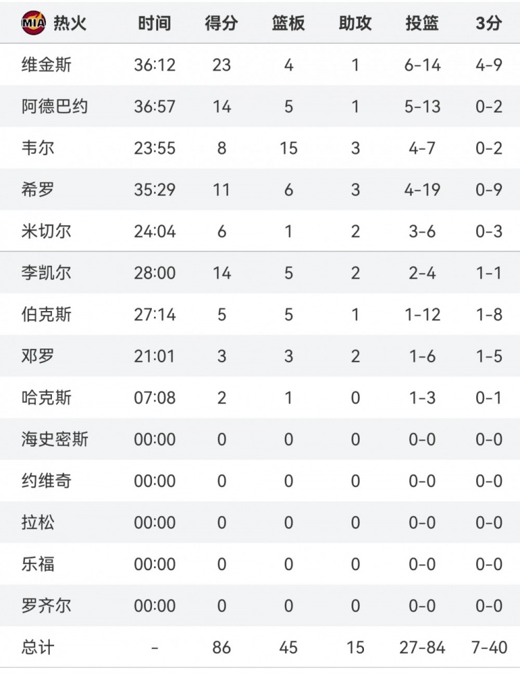 2025-02-25 16:14:29幾乎全員打鐵!熱火全隊三分40中7 但維金斯&李凱爾合計10中5