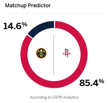 2025-03-23 22:46:35約基奇缺陣!火箭10連勝穩(wěn)了?ESPN預(yù)測明日勝率:火箭高達(dá)85.4%
