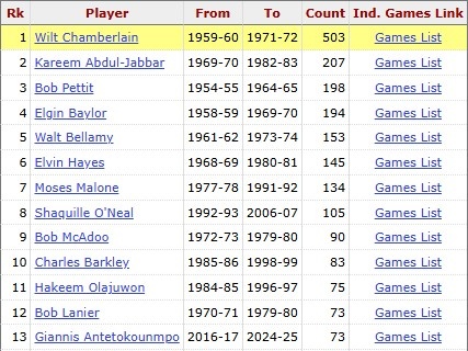 2025-03-23 22:59:45字母哥第222場(chǎng)比賽30+10板 現(xiàn)役斷檔領(lǐng)先 濃眉第2 詹姆斯第3