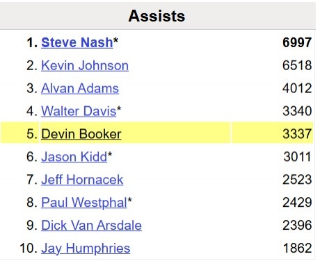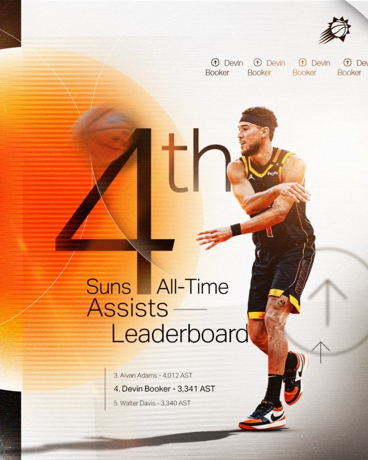 2025-02-26 16:20:57?布克太陽(yáng)生涯助攻數(shù)達(dá)到3341 超越沃爾特-戴維斯升至隊(duì)史第4