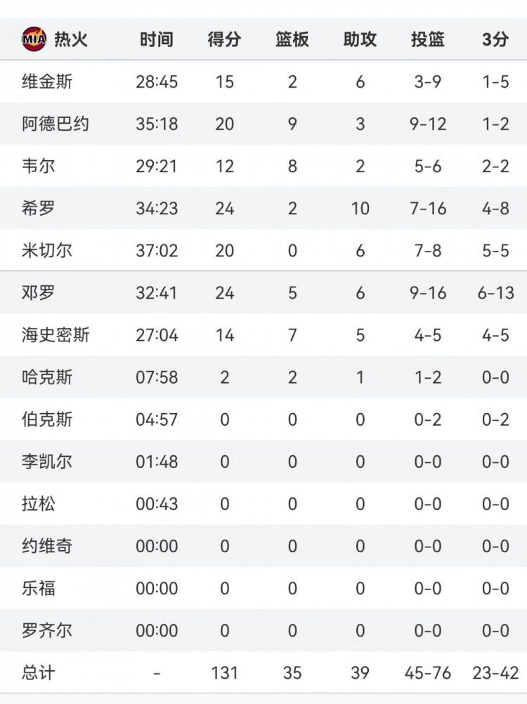 2025-02-27 16:21:21多點(diǎn)開花!熱火全隊(duì)7人得分上雙&4人20+ 希羅24分/維金斯15分