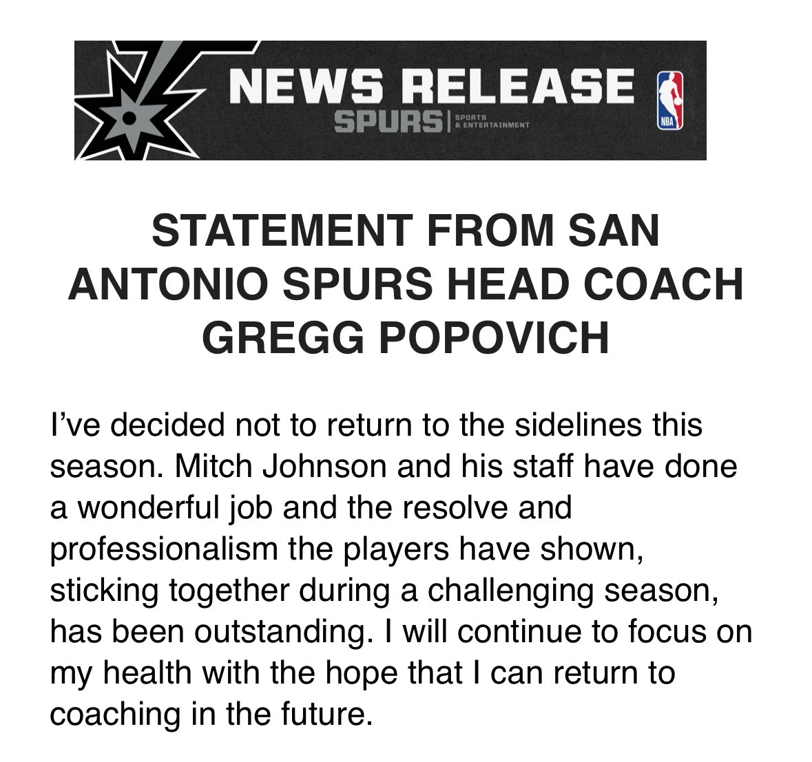 2025-02-28 08:15:50Haynes:波波維奇中風(fēng)以來首次發(fā)表全隊講話 表示本賽季不會復(fù)出