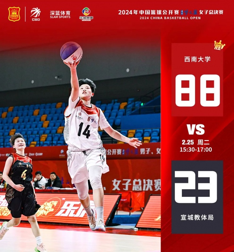 2月25日,2024年中國籃球公開賽洋河夢之藍女子總決賽在安徽省蕪湖市灣沚區(qū)航空新城運動中心打響。在首輪進行的三場比賽中,云南隊、西南大學(xué)、湖南師范大學(xué)取得開門紅。