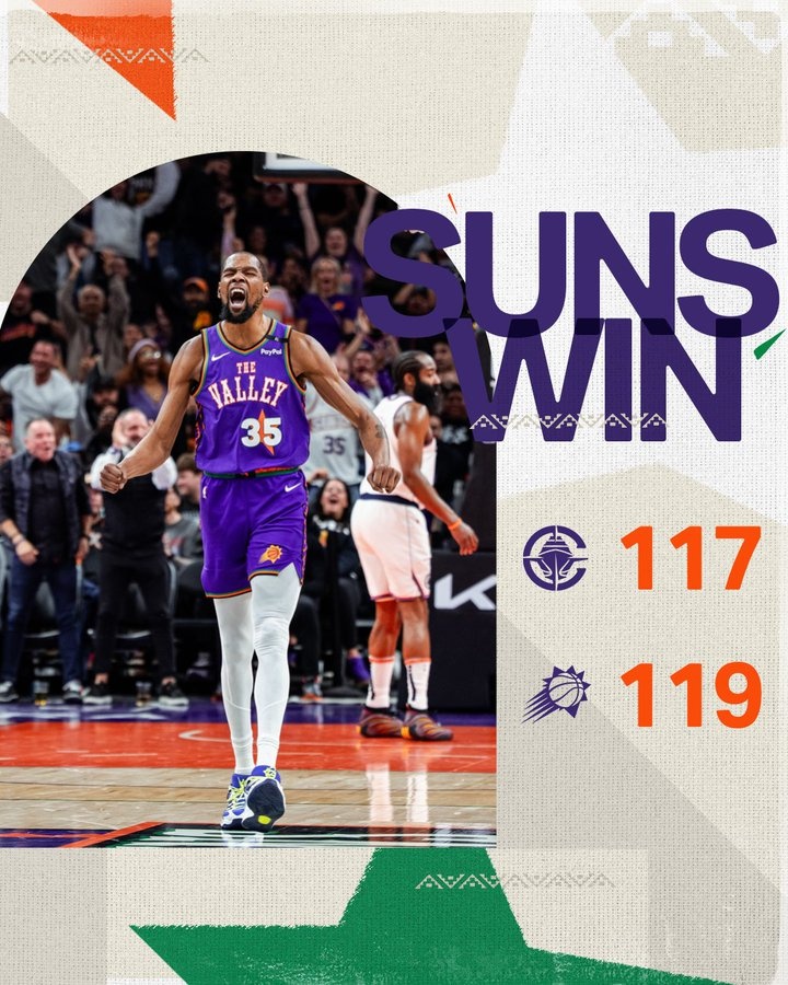 2025-03-05 23:51:31當(dāng)記首功!太陽官方曬贏球海報 杜蘭特振臂怒吼 哈登成為背景