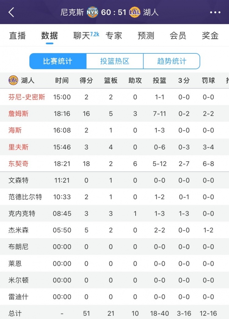 2025-03-07 15:23:51今天誰(shuí)都不準(zhǔn)!湖人半場(chǎng)投射不在線 全隊(duì)三分僅16中3&命中率18.8%