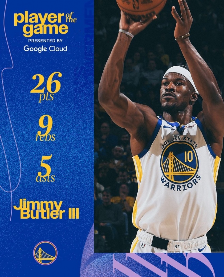 2025-03-09 14:58:57代表勇士出戰(zhàn)11勝1負(fù)!巴特勒當(dāng)選本場勇士最佳球員