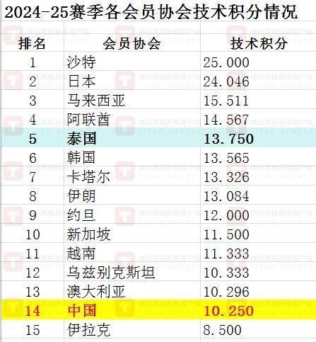 在各隊(duì)的技術(shù)積分揭曉后再累加,然后除以參賽隊(duì)數(shù),得出的平均分?jǐn)?shù)就是該會(huì)員協(xié)會(huì)在2024-25賽季的技術(shù)積分。