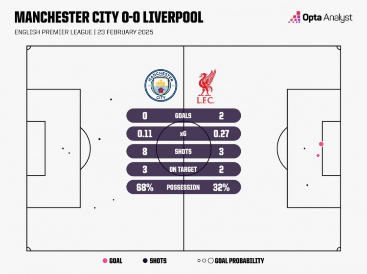 2025-02-24 16:11:36曼城0-2利物浦半場數(shù)據(jù):控球率68%-32%,射門8-3,射正3-2
