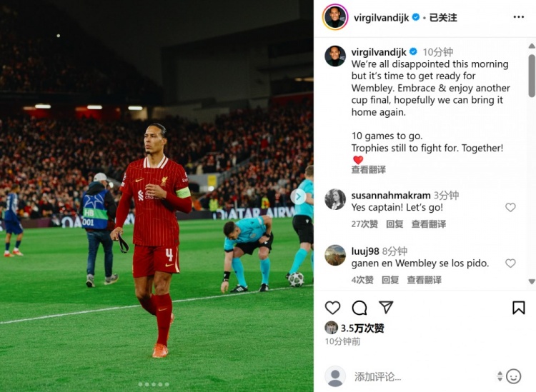 2025-03-12 21:52:43范迪克社媒鼓勵(lì)球隊(duì):賽季還剩10場(chǎng)比賽,還要為冠軍而拼搏!