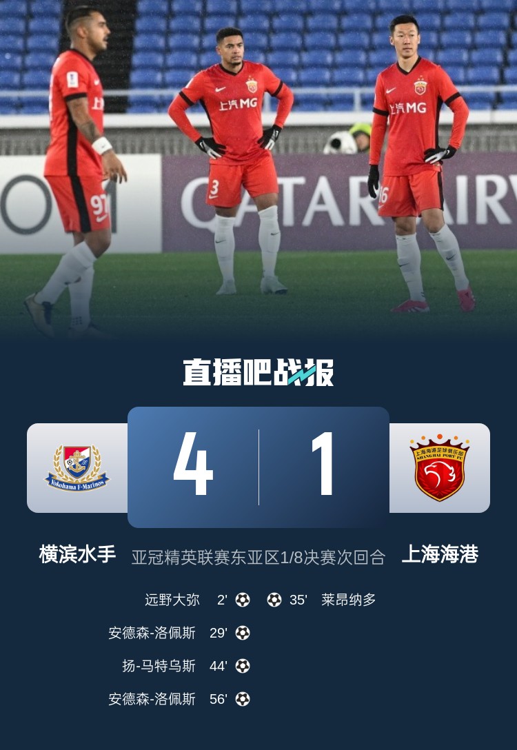 03月12日訊 亞冠精英聯(lián)賽東亞區(qū)1/8決賽次回合,上海海港客場(chǎng)1-4慘敗橫濱水手,兩回合1-5被淘汰。