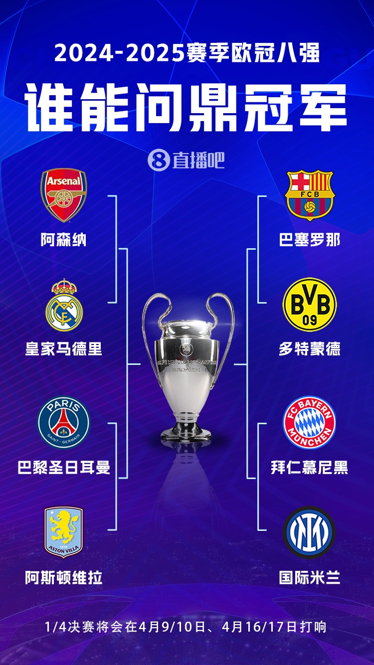 2025-03-13 14:31:53豪門之戰(zhàn)!歐冠8強(qiáng)全員五大聯(lián)賽,6隊(duì)拿過冠軍&槍手巴黎拿過亞軍