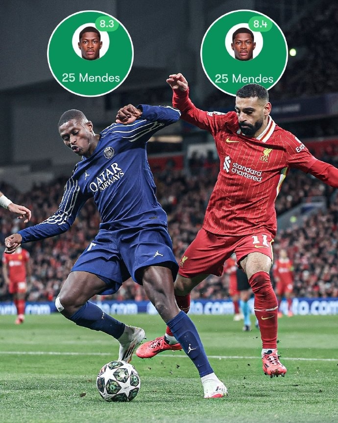 面對(duì)薩拉赫和路易斯-迪亞斯,奧斯曼-登貝萊&巴爾科拉強(qiáng)勢搶鏡,維蒂尼亞領(lǐng)銜的巴黎中場在和“邁巴赫”組合的對(duì)抗中同樣不落下風(fēng)。本場比賽,維蒂尼亞以93%的傳球成功率刷出111次傳球,成為了莫塔之后又一位在歐冠淘汰賽兩回合較量中均完成傳球次數(shù)破百的巴黎球員。另一位葡萄牙球員若昂-內(nèi)維斯的傳球成功率同樣超過90%,法比安-魯伊斯在90分鐘的出場時(shí)間內(nèi)贏得6次對(duì)抗和4次成功搶斷。