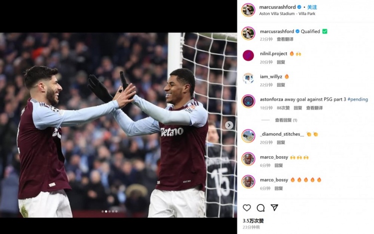 2025-03-13 14:38:31造紅牌+送助攻!拉什福德社媒曬與阿森西奧慶祝照:晉級!