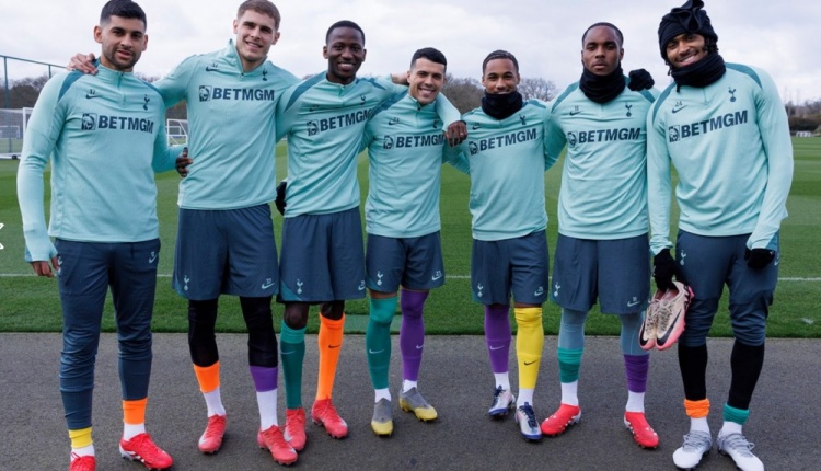 2025-03-13 14:39:52??熱刺男女足一線隊(duì)球員穿不同顏色球襪,支持唐氏綜合癥患者