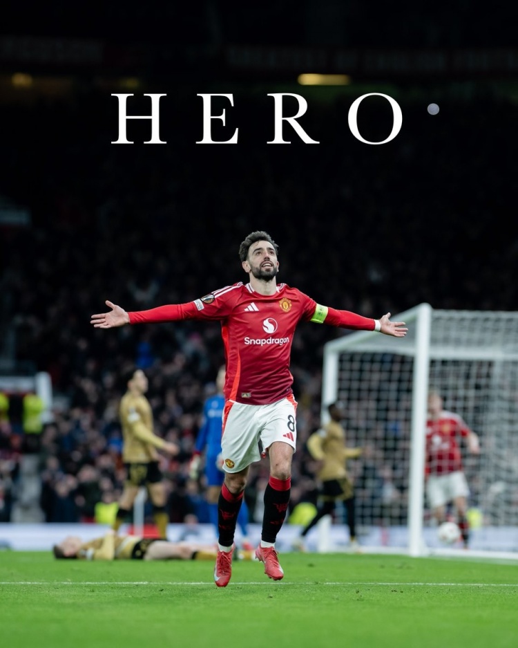 曼聯(lián)官推也曬出B費(fèi)的慶祝海報(bào),上面印有大大的“英雄”字樣。曼聯(lián)官推還配文:“無需多言?!?/p>