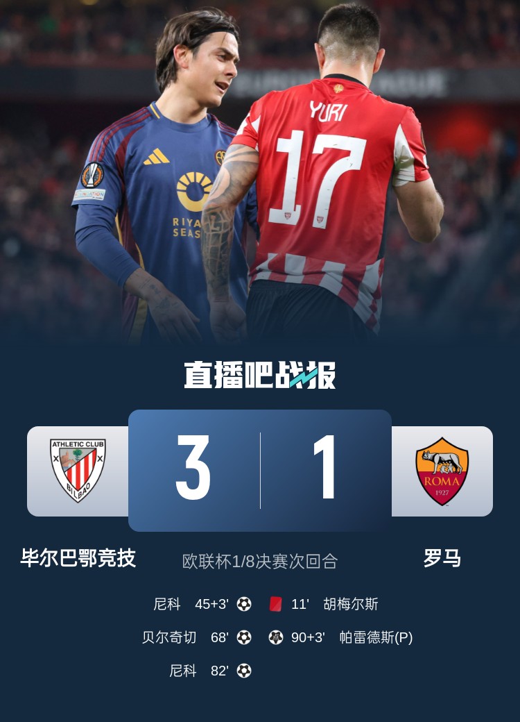 歐聯(lián)16強次回合,羅馬1-3不敵畢巴,羅馬總比分3-4遭逆轉(zhuǎn)。胡梅爾斯11分鐘染紅。