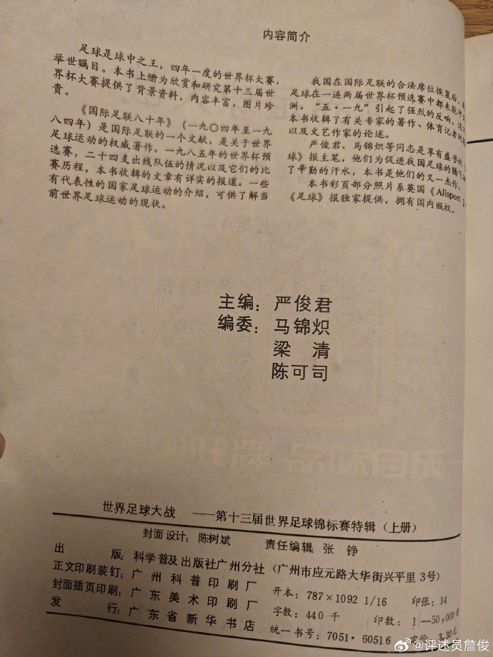 父親說(shuō),這些小薄紙片挺“解渴”的。那里肯定也有嚴(yán)俊君老總的“耕耘之作”。我開(kāi)始工作后,和“足球報(bào)”很多同行成為好友,可惜那時(shí)嚴(yán)總已經(jīng)退居二線,無(wú)緣相見(jiàn)。今晚得知他老人家駕鶴西去,心中惆悵。謝謝您!曾經(jīng)帶我們這些球迷去“看世界”……