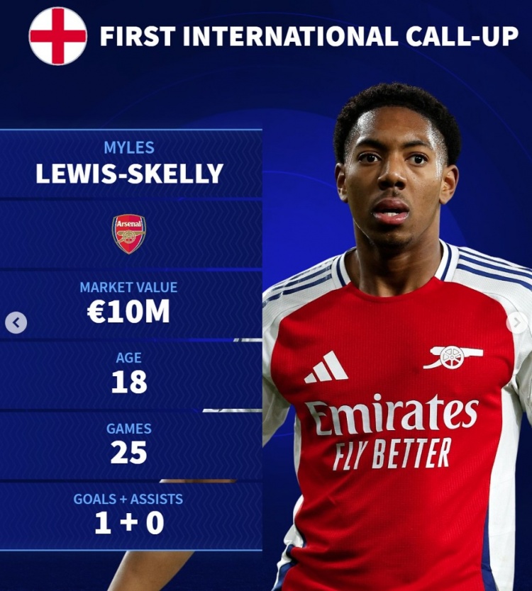 斯凱利(阿森納,英格蘭),1000萬歐,18歲。25場1球0助攻