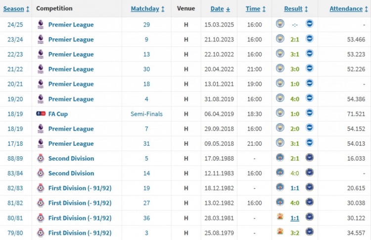 2025-03-15 17:16:2612勝2平,曼城歷史上各項(xiàng)賽事主場(chǎng)對(duì)陣布萊頓未嘗敗績(jī)