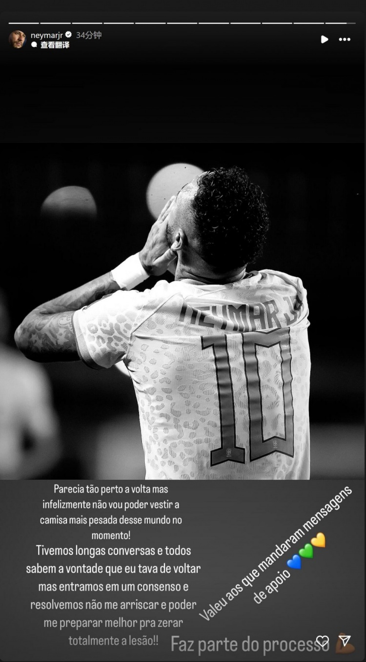 2025-03-15 17:20:42內(nèi)馬爾談退出本期巴西隊:感謝大家的支持,但我需要等完全傷愈