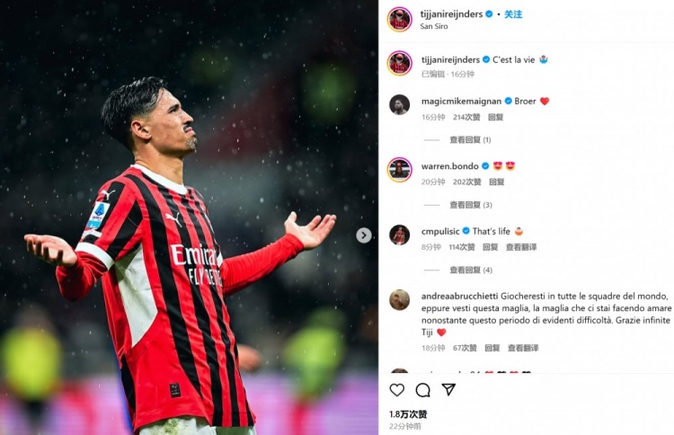 2025-03-16 08:41:19傳射助米蘭叕逆轉(zhuǎn)!賴因德斯社媒曬“無奈攤手”慶祝:這就是生活
