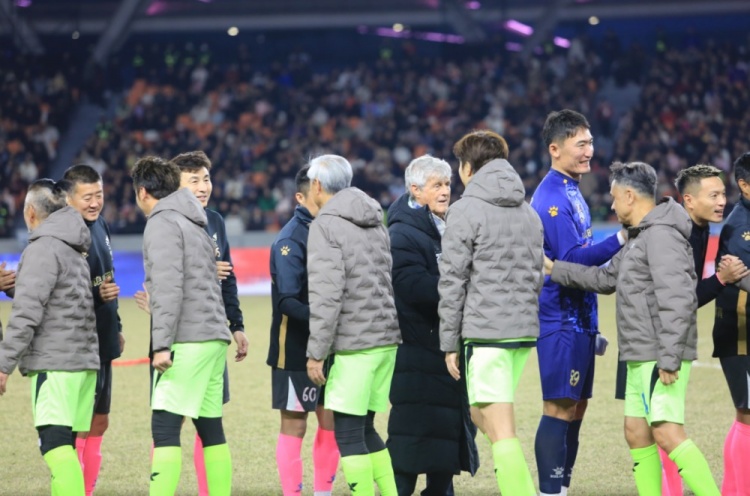 2025-03-16 21:30:19中國香港明星足球隊(duì)40載巡回賽樂山站,1-2不敵海浪明星足球隊(duì)