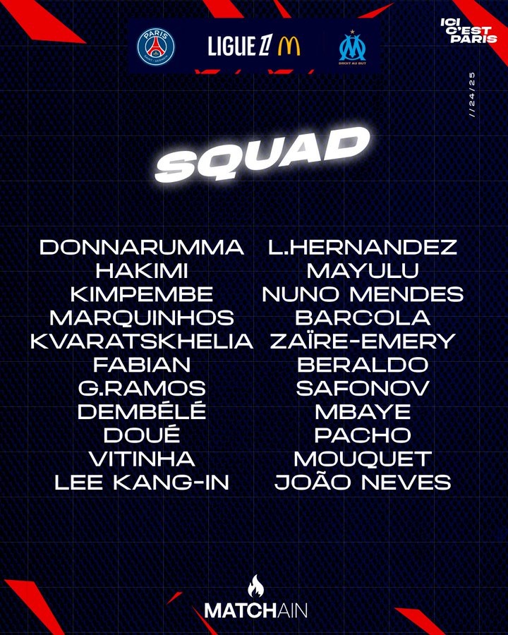 2025-03-16 21:30:42巴黎戰(zhàn)馬賽大名單:K77、登貝萊、內維斯、維蒂尼亞領銜