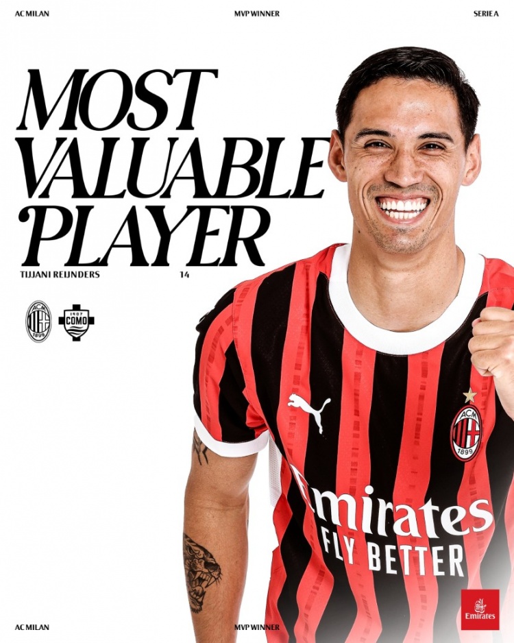 2025-03-16 21:31:24對陣科莫傳射建功,賴因德斯當(dāng)選本場比賽米蘭隊內(nèi)最佳球員