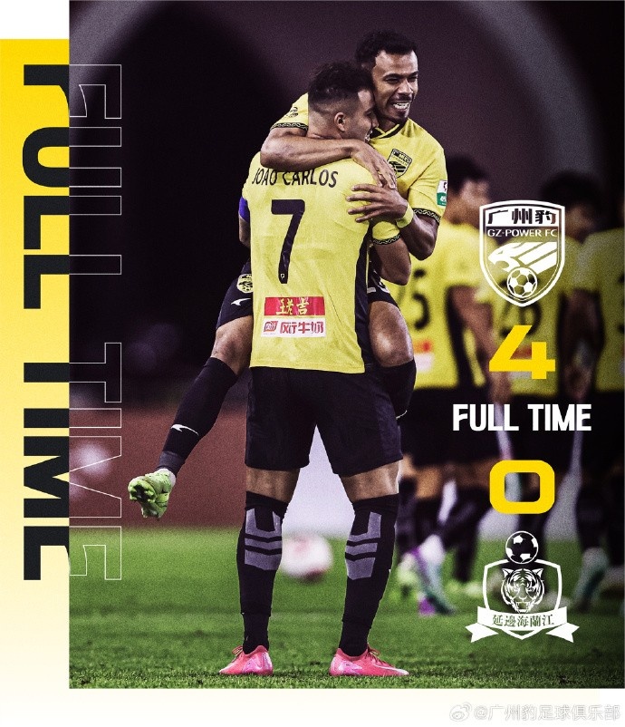 廣州豹在下半場的第一次進攻就鎖定勝局,第46分鐘,巴西外援羅薩在反擊中突施冷箭,對方門將董佳林面對這腳遠射措手不及,最終導致脫手,目送皮球滾入球網(wǎng)。第87分鐘,巴西外援卡洛斯完成梅開二度將比分鎖定為4-0。