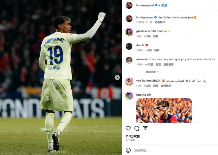 2025-03-17 16:30:56打破西甲4個半月進球荒!亞馬爾社媒曬照慶祝:巴薩球迷們別擔心
