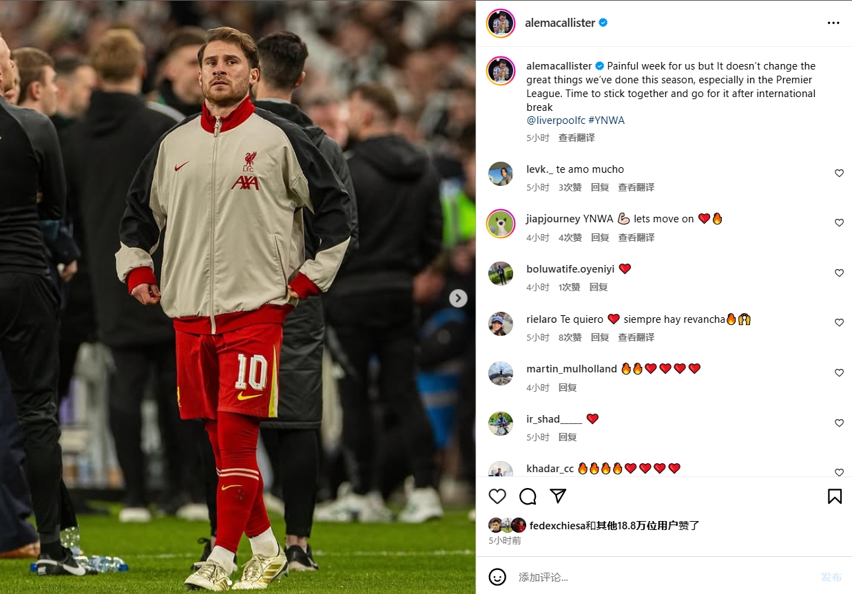 2025-03-18 08:20:43麥卡利斯特社媒:這是痛苦的一周,國際比賽日后要全力以赴