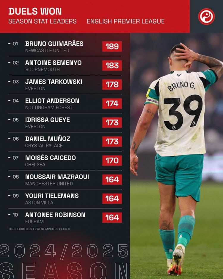 2025-03-18 08:24:04本賽季英超成功對(duì)抗榜:吉馬良斯居首,凱塞多、馬茲拉維在列