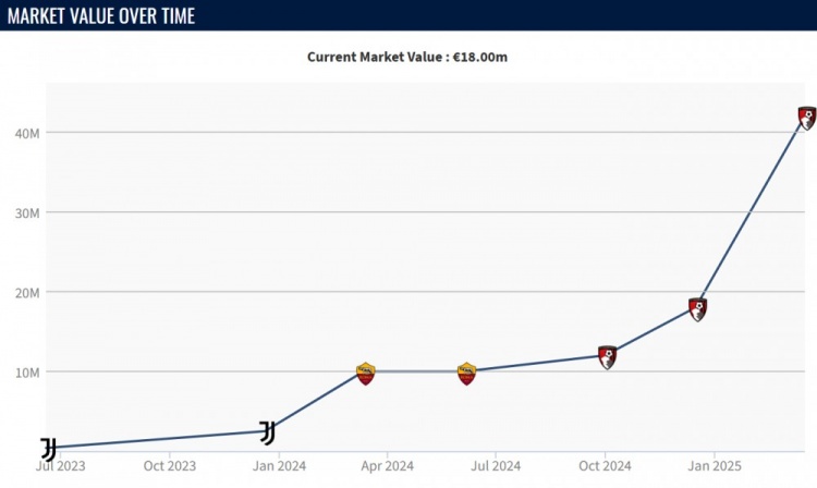 2025-03-18 21:09:18暴漲2400萬歐,19歲伯恩茅斯后衛(wèi)懷森身價(jià)已達(dá)4200萬歐
