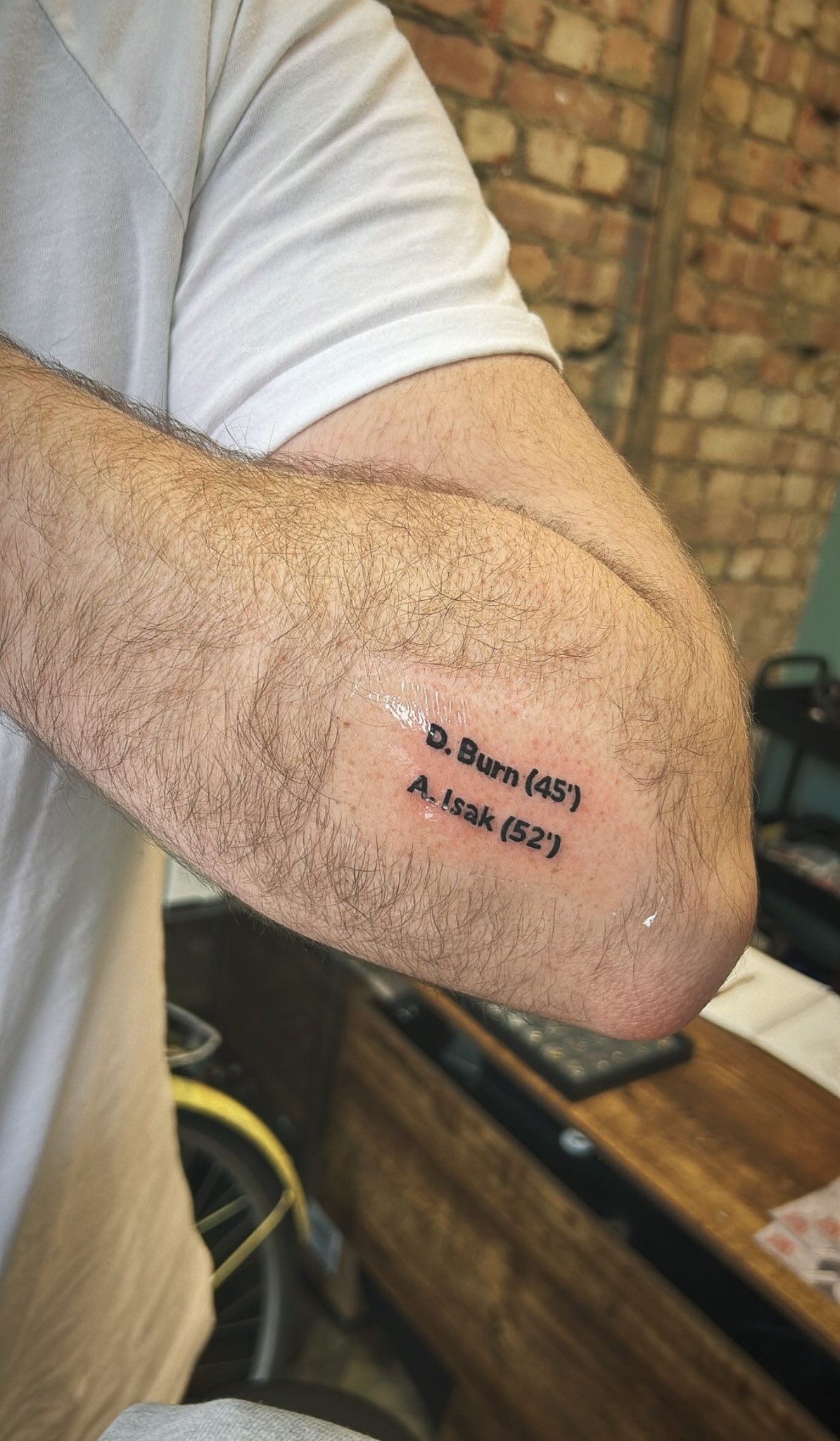 2025-03-18 21:10:5270年1次!聯(lián)賽杯奪冠后 紐卡球迷把丹伯恩和伊薩克姓名紋到手臂上