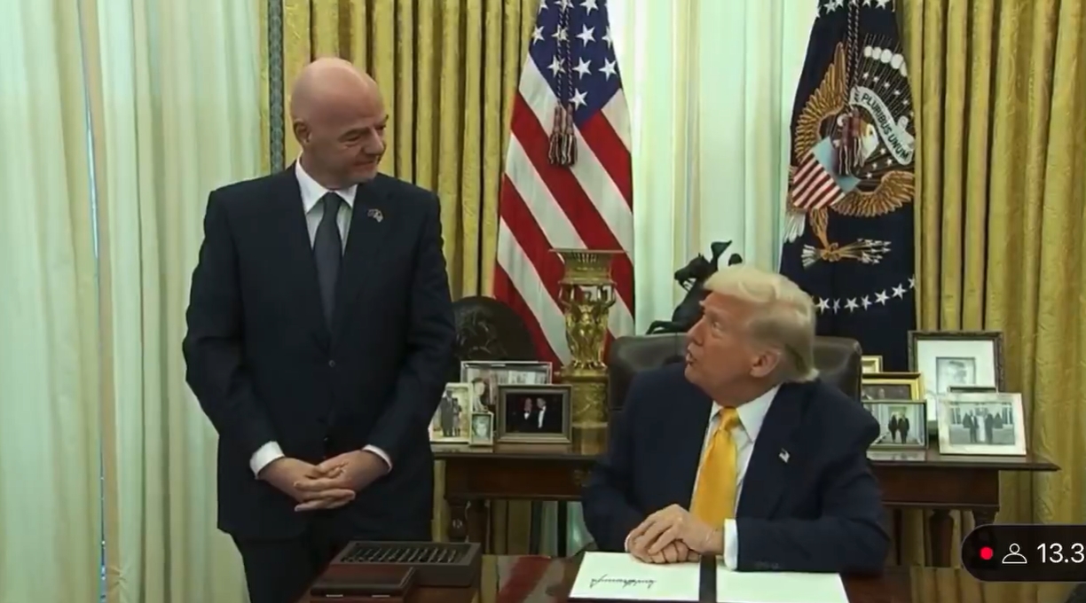 特朗普此前問美國(guó)能否贏下2026世界杯,因凡蒂諾回答:當(dāng)然有機(jī)會(huì)。