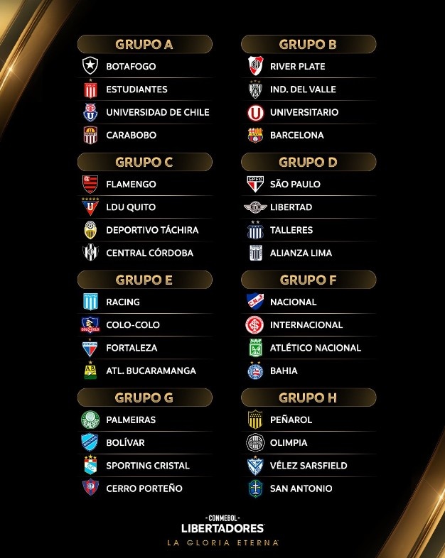 南美解放者杯分組:博塔弗戈、大學(xué)生同組,河床、巴塞羅那SC同組