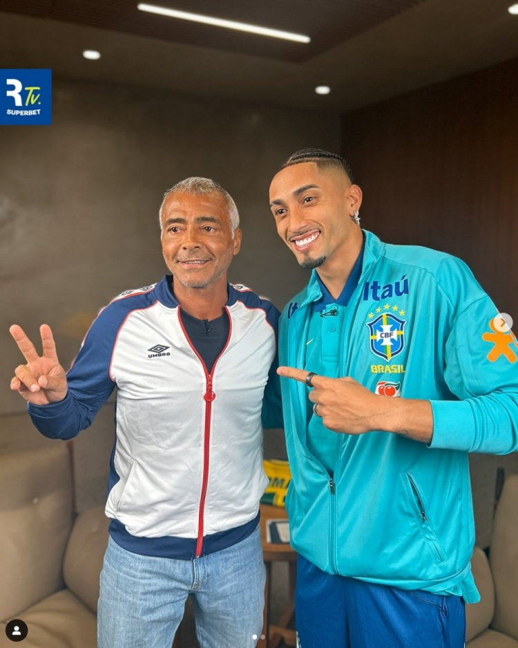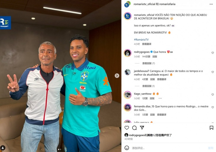 2025-03-19 16:45:31羅德里戈&拉菲尼亞&恩德里克做客電視節(jié)目,與羅馬里奧合影留念