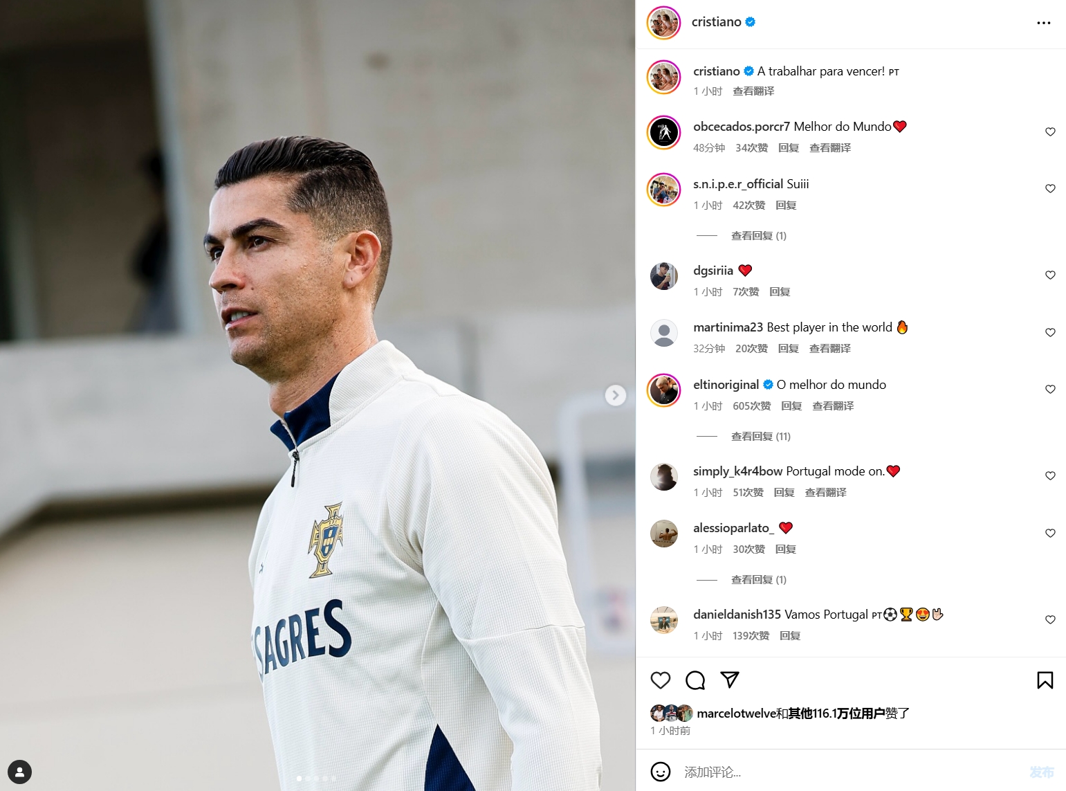3月19日訊 不久前,正在葡萄牙國(guó)家隊(duì)備戰(zhàn)的C羅更新了社交媒體。