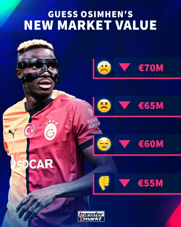 2025-03-20 10:18:53確定下跌!德轉(zhuǎn)預熱奧斯梅恩身價變化,最低降至5500萬歐元