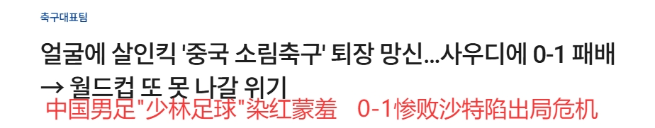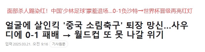 2025-03-21 09:19:01韓媒大面積群嘲國足:殺人飛腿、少林足球、蒙羞退場、世界杯夢碎