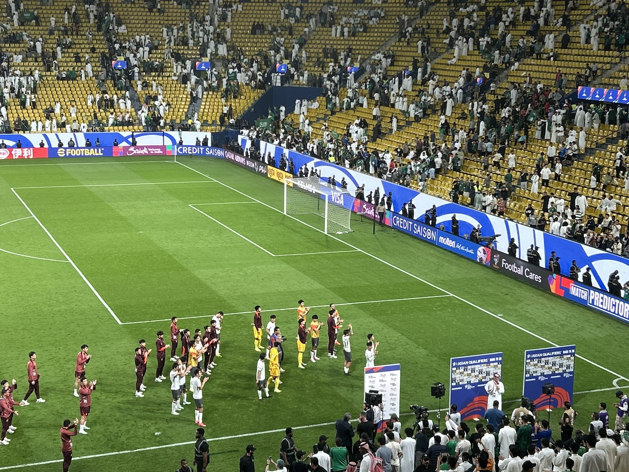 客場遺憾落敗,國足球員賽后向球迷謝場